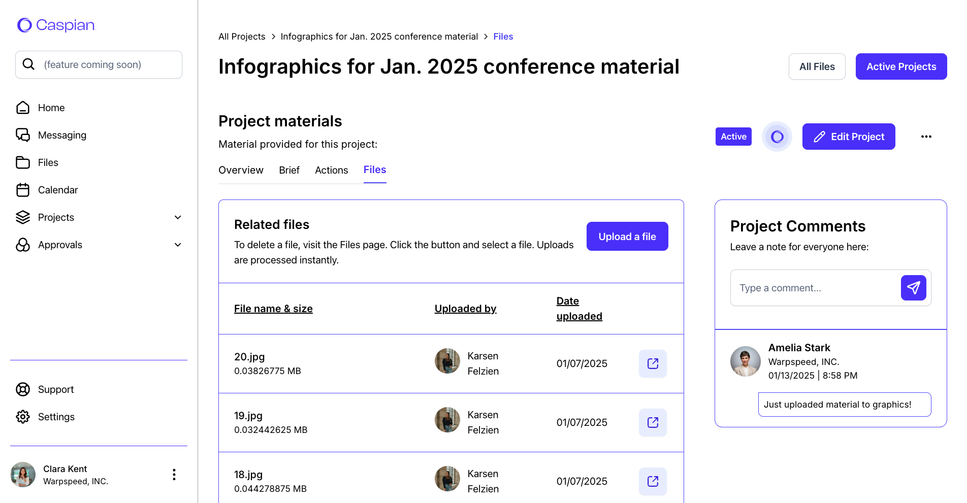Caspian offers two-way, real-time sync between your internal teams and your outsourced creative talent.