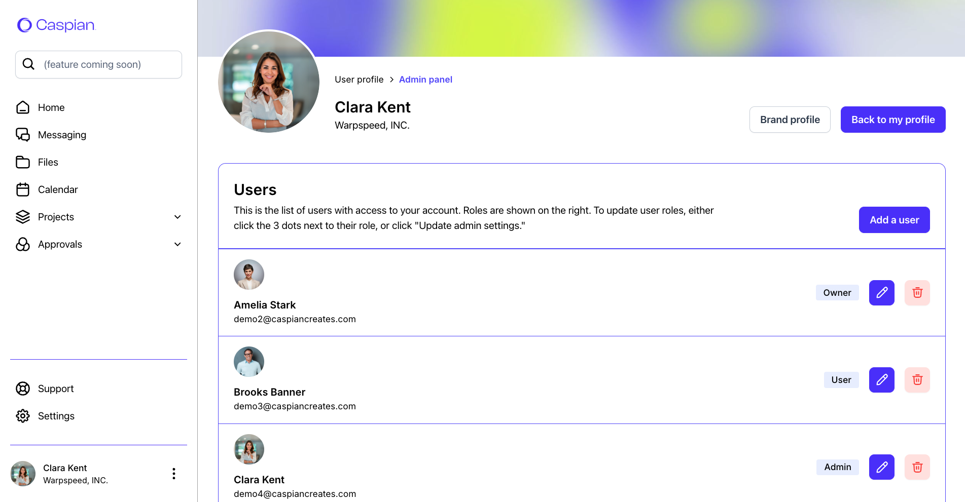 Caspian offers two-way, real-time sync between your internal teams and your outsourced creative talent.