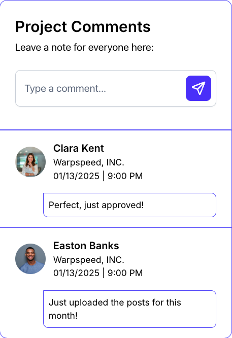 Our tool offers a clear view of all tasks and assets for a project, enabling effective resource, timeline, and deliverable management to meet project goals.